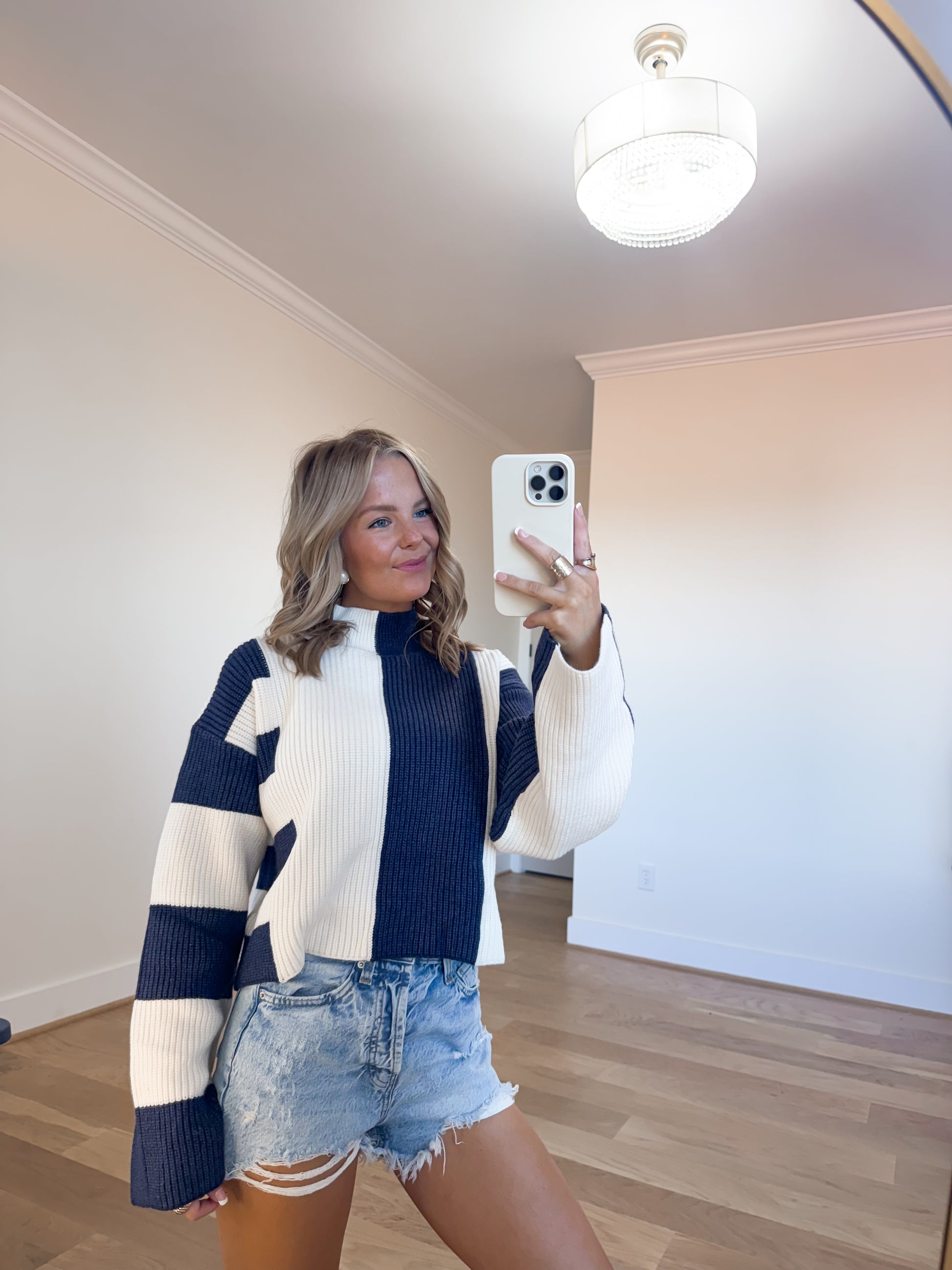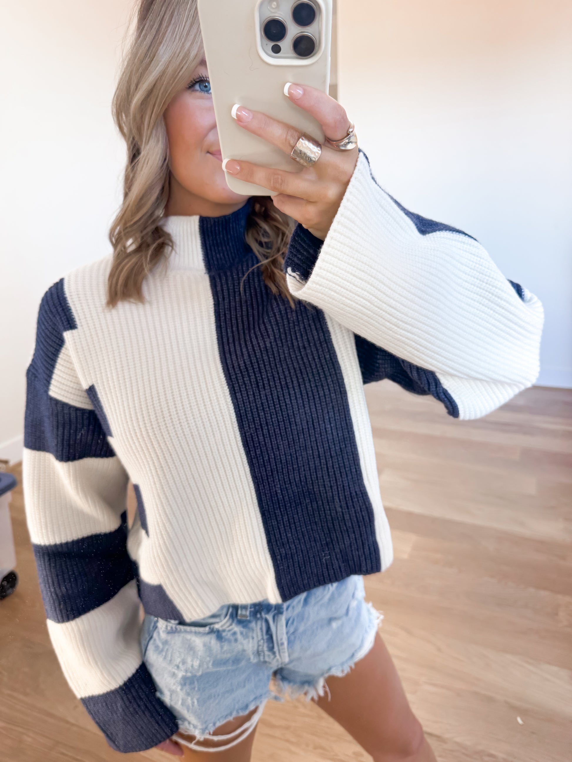 Color Block Mock Turtleneck Sweater